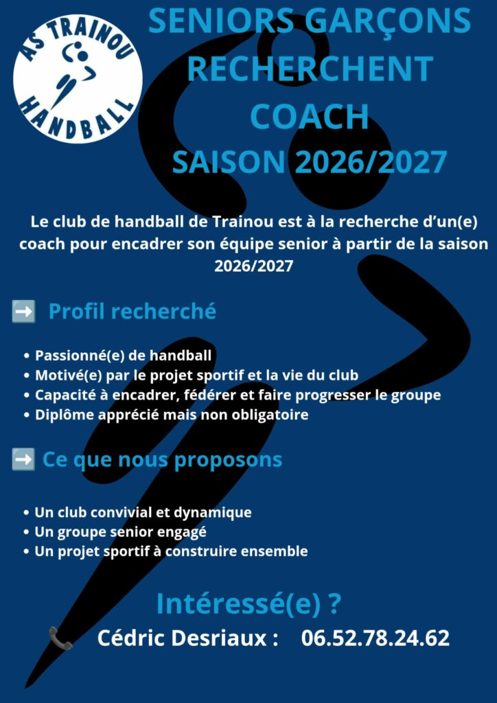 🔵🔴 Les Seniors Garçons de l’AS Trainou Handball recherchent leur futur(e) coach ! 🤾♂️